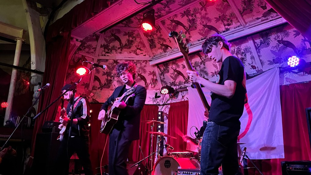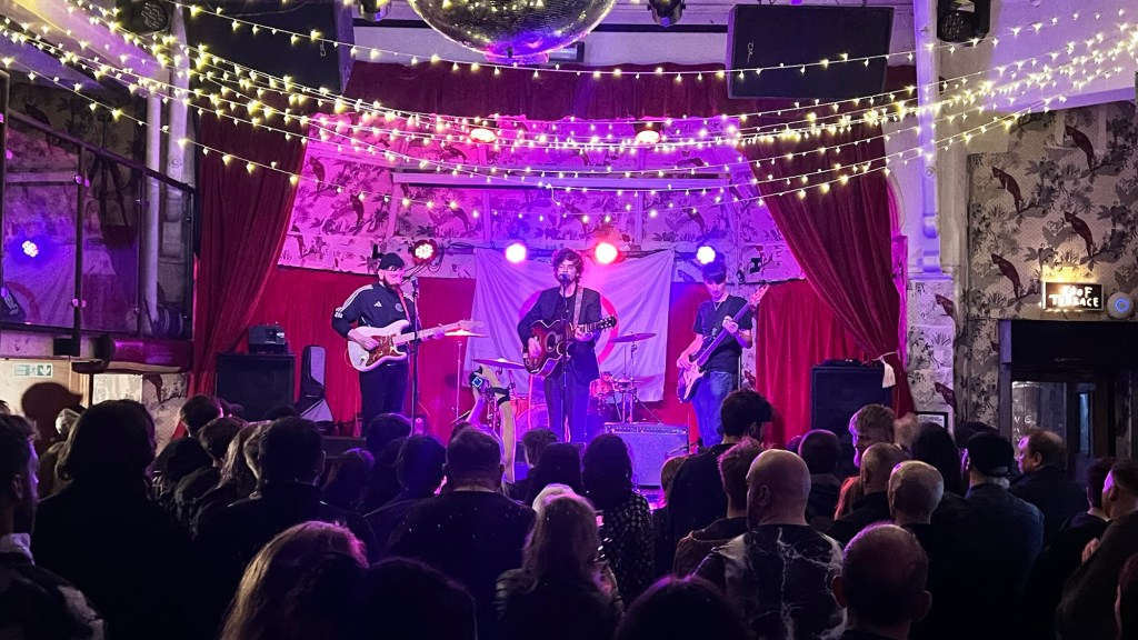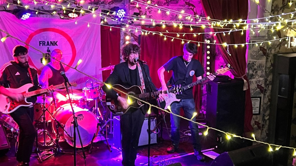 We all sway our hair and dance shyly through this goodbye that wants to feel more like a “see you later.” In the corridors and bathrooms, voices of mostly young college students encourage their friends on the phone to come along. Not long later — and after a cigarette — the next band begins in a room slightly busier than before. They open with an original song featuring a riff reminiscent of Lost in the Supermarket by The Clash, ending in a guitar solo that drifts into space. Their next track, a city classic, covers I Wanna Be Adored. New Issue play to a crowd that, for the first time that night, feels truly animated and engaged. The venue gradually fills with older faces alongside students. They offer something like a refreshing wind of ’90s rock — admired by many of their parents and university peers — and so many covers that I can’t help but wonder whether they might have been a better choice to open the night. Nothing particularly exciting, but well played, warming us up for what was still to come…Meanwhile, the members of Lemon and Ginger wander around, greeting people and blending into the crowd. The atmosphere heats up even during the slower songs. People chat about the handsome guitarist on the right. The room fills halfway, conversations buzzing. As the set progresses, souls become more present, more surrendered. The band play sharper, visibly enjoying themselves more — more confident, smiling. Their final song is a cover of Oasis’ Champagne Supernova, and the front row responds with raised hands, everyone chanting another city hymn in unison. After this anthem, the crowd calls for an encore that never quite arrives, even though the band seem ready for it.